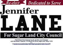 Re-Elect Jennifer Lane for Sugar Land City Council • At Large Position 2